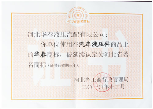 河北華春液壓汽配有限公司始建于1995年,2004年12月29日更名為河北華春液壓汽配有限公司。公司占地100余畝,注冊資金1200萬元,是一家集汽車液壓閥、液壓泵、液壓油箱、液壓油缸等自卸汽車液壓系統(tǒng)的研發(fā)、生產(chǎn)和銷售為一體的國家級高新技術(shù)企業(yè)。